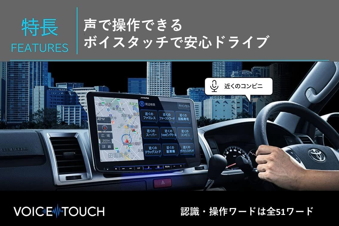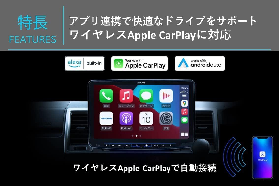 アルパインの大画面11型フローティング ビッグX11「XF11NX2S」。スマホ連携特化モデル。音声アシスタントAmazon Alexa搭載。ビッグXと連携し声での操作がさらに進化。HDMI-CEC対応。Apple CarPlay/ワイヤレスカープレイ/Android Autoにも対応。新構造採用(1DIN筐体)で取付可能車種が従来の20車種から100車種以上に。1DIN設計と新機構によりこれまで装着ができなかった多く車種にも取付け可能になりました。新機構構造変更で、ディスプレイの前後位置の調整ポジションを3か所に変更。また、本体取り付け後のディスプレイの上下位置が、5段階で調整できます。さらに1DIN構造により、車両の上段、下段へ取付が可能になりました。スマホ連携強化新しいビッグXはスマホ連携をさらに強化しました。「Amazon Alexa」搭載し、「Apple CarPlay」や「Android Auto」にも対応のビッグX。さらに便利に。さらに使いやすく機能を強化しました。