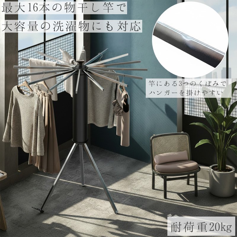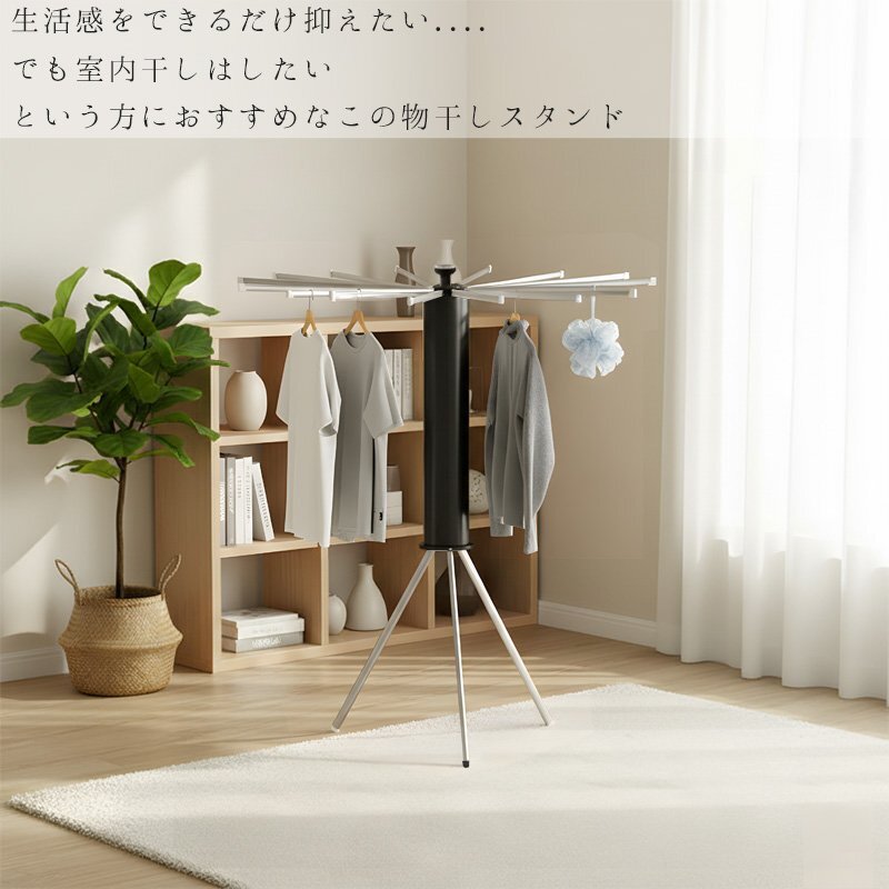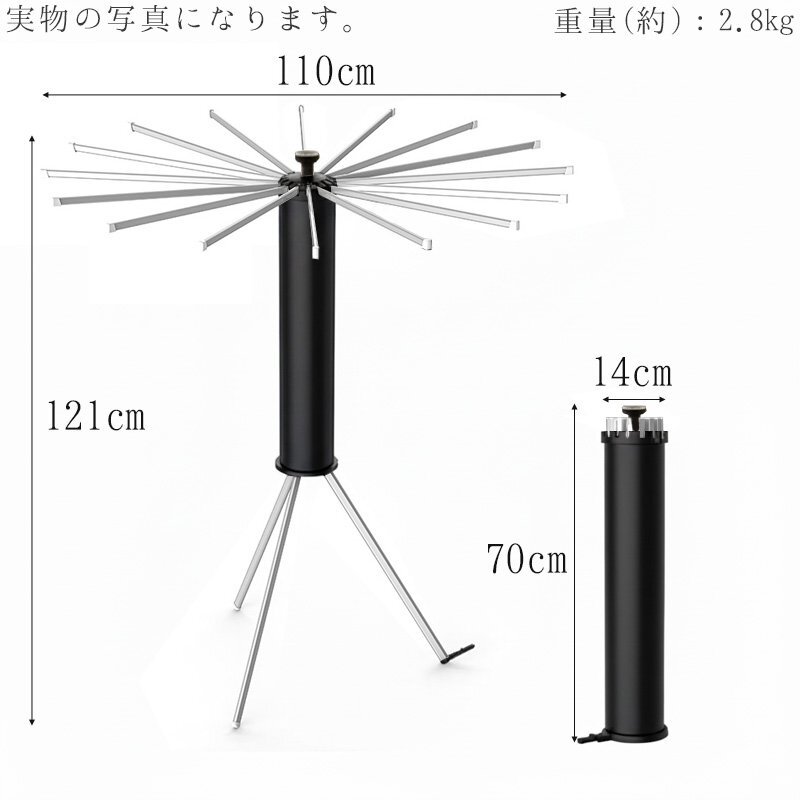 ![]() ■使う場所や洗濯物の量に合わせて形を変えられる 最大16本の物干し竿で大容量の洗濯物にも対応! 狭いスペースでも広いスペースでも、柔軟にサイズを調整でき、必要な分だけ竿を出して使えるので、無駄なく効率よくお洗濯ができます。 さらに、竿の数を減らしてコンパクトに使うことも可能で、家族の人数や場所に応じて使い方を変えることができます。 ■使わないときは省スペースに収納 使わないときは省スペースに収納。折りたたむと直径14cmのコンパクトなサイズになり、家具の隙間に収納でき、場所を取りません。狭い部屋でもスッキリ片付けられ、収納時に邪魔にならず、必要な時にサッと取り出してすぐに使えます。収納時も場所を取らないので、賢くスペースを活用できます。 ■広げて上にかぶせると布団も干せる 広げて上にかぶせると布団も干せるので、忙しい日常でも簡単に大きなアイテムを干すことができます。布団やシーツをしっかりと乾かせる広いスペースを確保でき、風通しが良いため、効率よく乾燥させることができます。 ■商品詳細 カラー:ブラック×シルバー サイズ(約):展開時:高さ121cm、横幅110cm / 収納時:高さ70cm、横幅14cm 重量(約):2.8kg 素材:本体:プラスチック / 先端パーツ、ハンガー:アルミ 耐荷重(約):20kg |