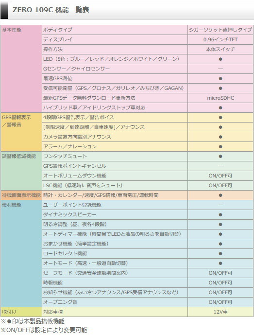 | ZERO 108CとZERO 109Cの変更点 | |||||||