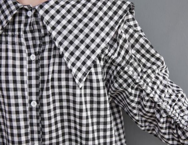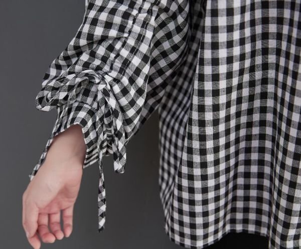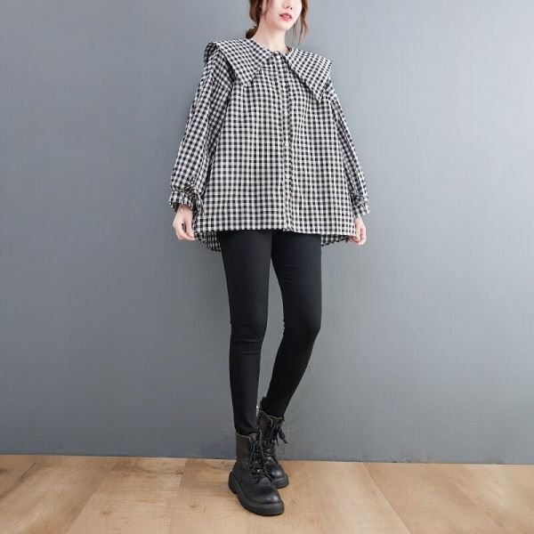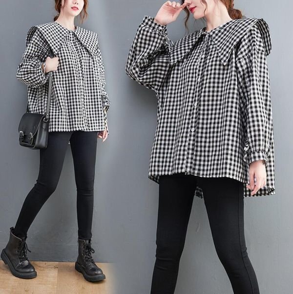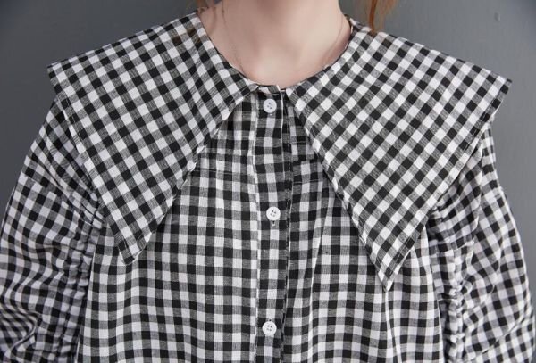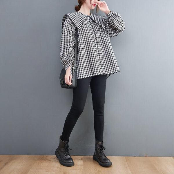 超可愛い 大人 トップス チェック柄 綿麻 ブラウスシャツ 学院風 大きいサイズ 長袖 チュニック★XLサイズ [浏览原始页面]