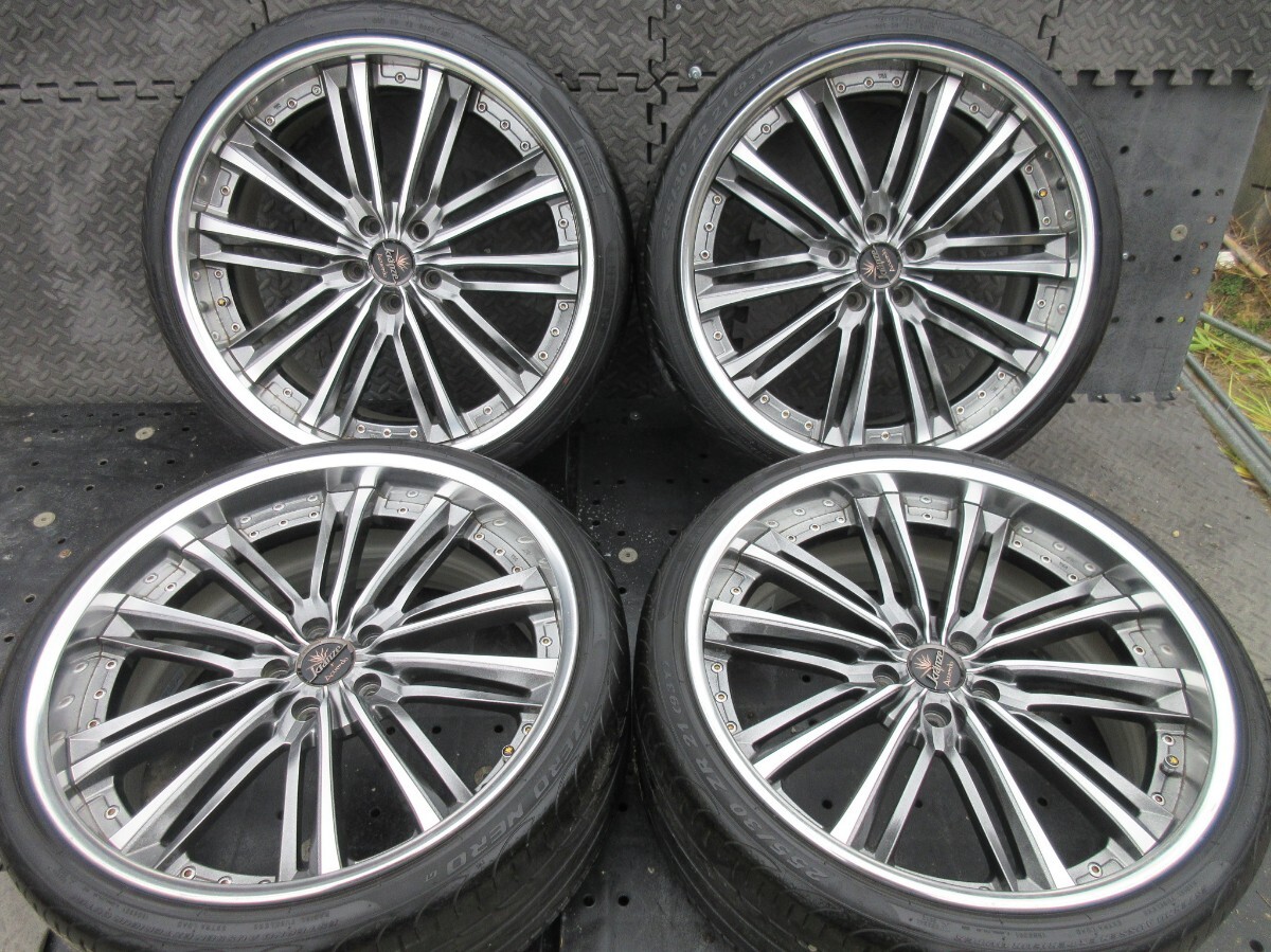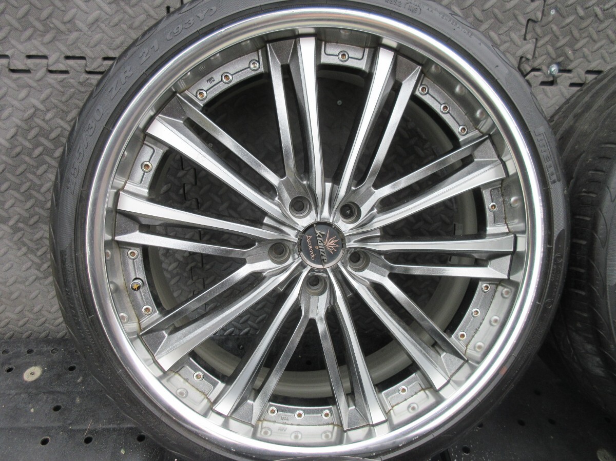 | ◆ホイール◆ メーカー:WEDS KRANZE ACUERDO(アクエルド) サイズ:21×9J +42 サイズ:21×9.5J +35 PCD:5穴/114.3 ハブ径 :73mm ◆タイヤ◆ メーカー:PIRELLIP ZERO NERO サイズ:255/30R21 希少人気ブランドシリーズ!! WEDS KRANZE アクエルド 目立つ不具合やクラック曲がりなく 全体的に美品かと思います タイヤは人気メーカーラジアル バリ溝かと思います 他状態等は画像でご確認下さい 売り切りですのでこの機会にぜひ。 | ||