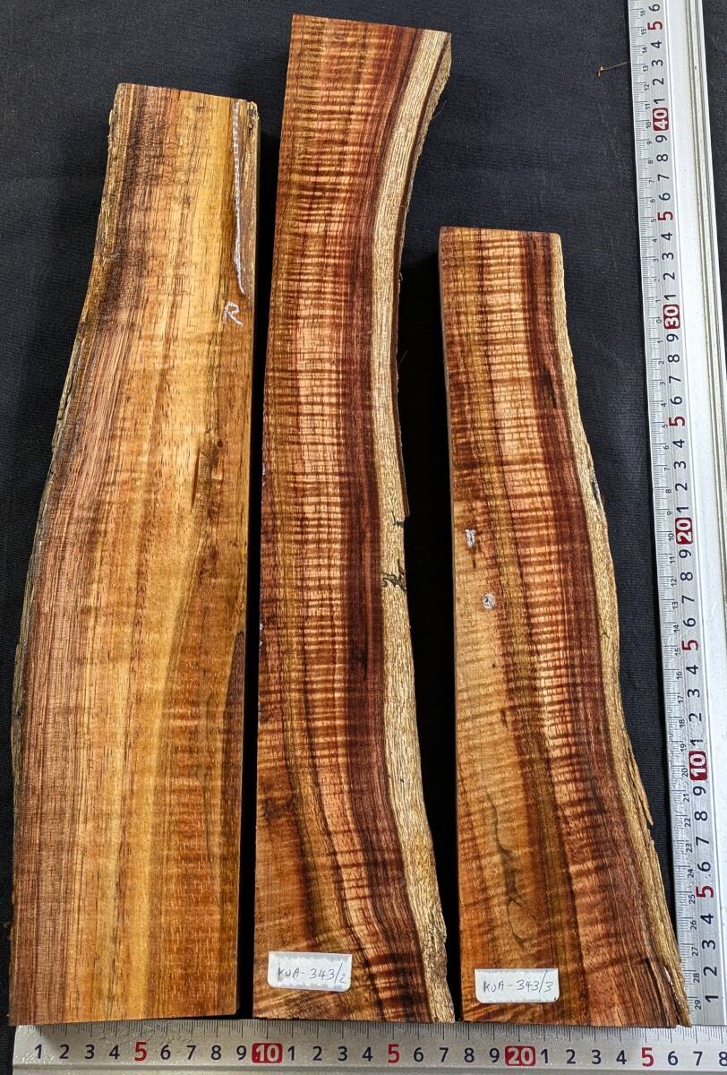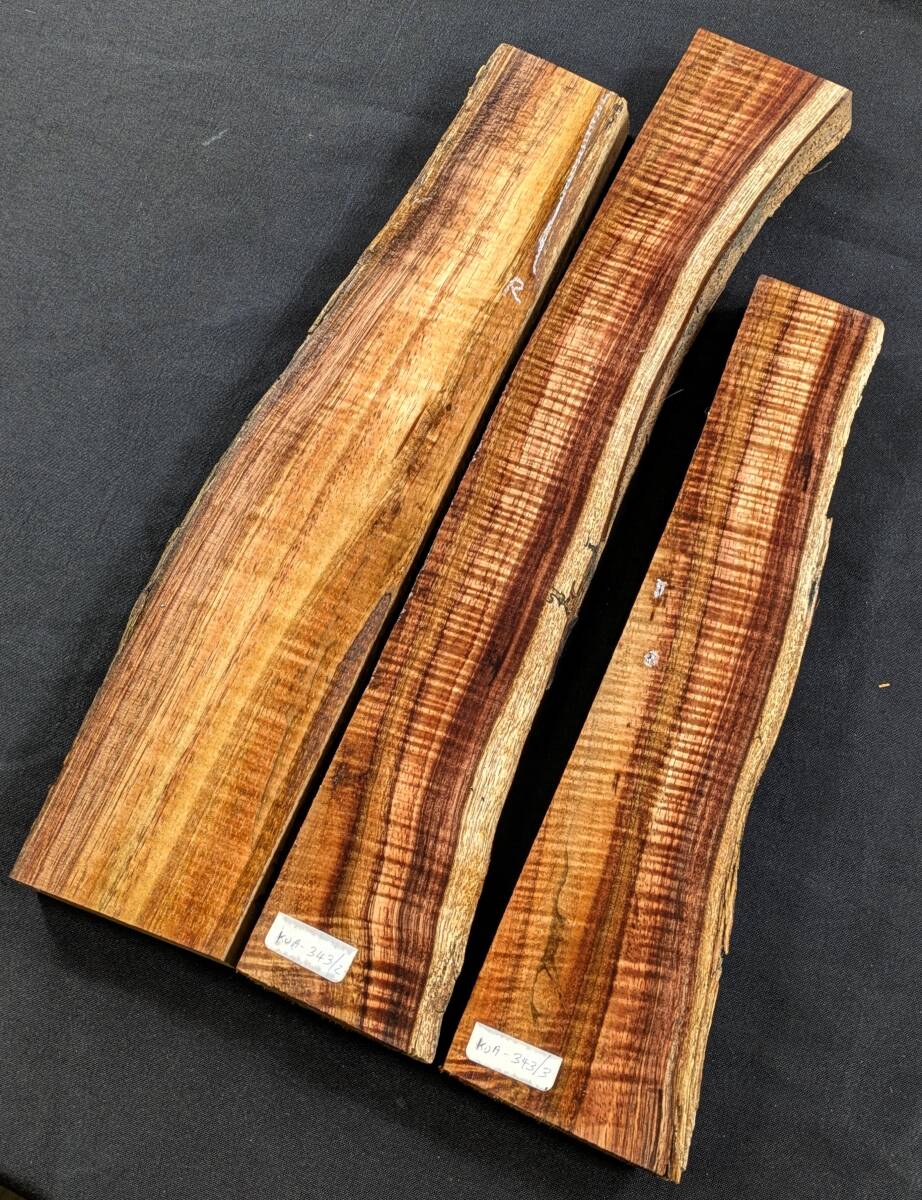 KOA-343・送料無料・希少3A~5Aカーリーハワイアンコア3本セット