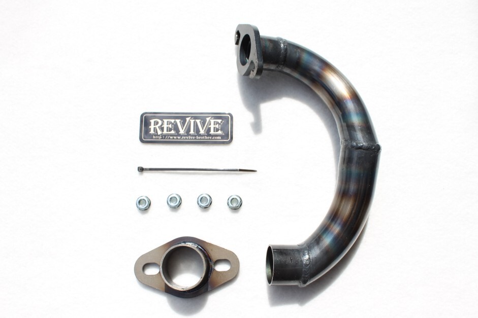 ノーマルより太く短くなりパワーバンドが高回転に移行します。 ノーマルマフラーに取り付けできます。 マフラーとの接合部分はジョイントタイプで回転いたしますので社外マフラーに対応しています。 取り付けボルト、液体ガスケット、取り説、ステッカー付属 | ||||