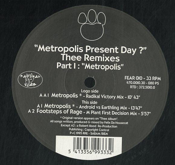 A00365698/12インチ/Felix Da Housecat「Metropolis Present Day ? Thee Remixes Part I Metropolis (1995年・ベルギー盤・テクノ・TECHN