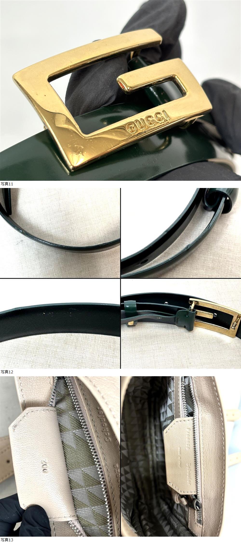 | IN25/GUCCI/レザーベルト/ダークグリーン・ゴールド/Gマークロゴ/グッチ/ベルト |