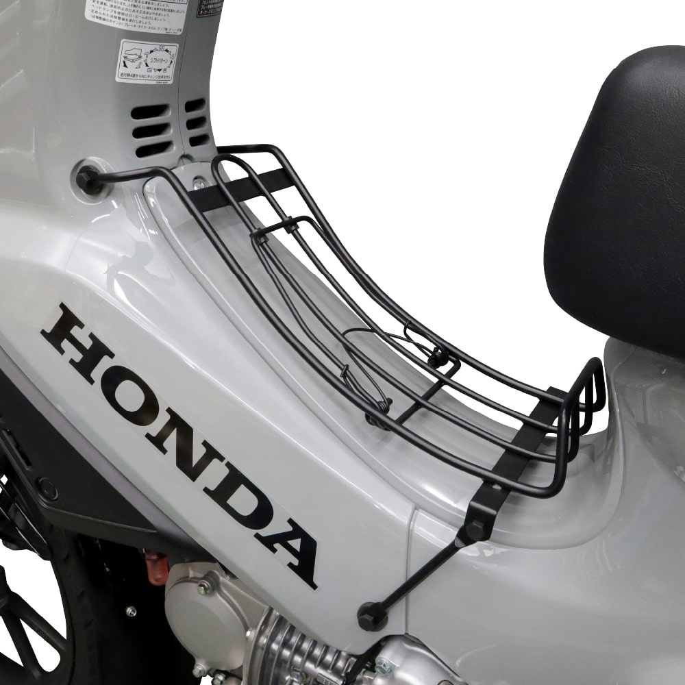 | おなじみのベトキャリのブラックタイプ。 2017年11月発売のスーパーカブ「JA44/AA09/JA45/JA42/AA07」 2022年4月発売の「JA59/JA60」専用です。 ステンレス製。ちょっとした荷物の積載に。 |