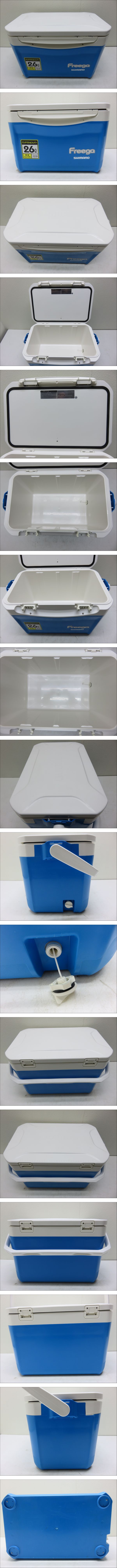 SHIMANO Freega シマノフリーガ LZ-026K コンパクト 260 クーラーボックス ライトブルー 日本製 釣り キャンプ 26L 中古 ● 多少の使用感はありますが、目立つキズ、汚れなく船体的に綺麗な状態です。 ● 像をよくご確認いただき、ご了承いただける方のみご入札をお願いいたします。 ● 状態に関しましては個人的主観の違い等ありますので、 写真にて判断頂きノークレームにてお願い致します。 ● 本体と専用ストラップのみになります。 写真に載っている物が全てになります。 ◆ 取り扱いやすい軽量コンパクトフォルム 取り扱いやすい軽量かつコンパクトなフォルムで、余裕の収納力を発揮。 保冷力、収納性、そして強度などクーラーに求められる基本性能を磨いた”フリーガ”。防波堤から磯、船まで幅広いフィールドで活躍します。 ・本体フタは簡単に着脱可能 ・天面・底面・側面に断熱材を配し、高い保冷力を誇ります ・立方体に近いボディで効率よくコンパクトに収納 ・レバー部は腰掛け使用を想定した耐荷重設計 ・ネジ式水栓付 ・ハンドル付 | |||