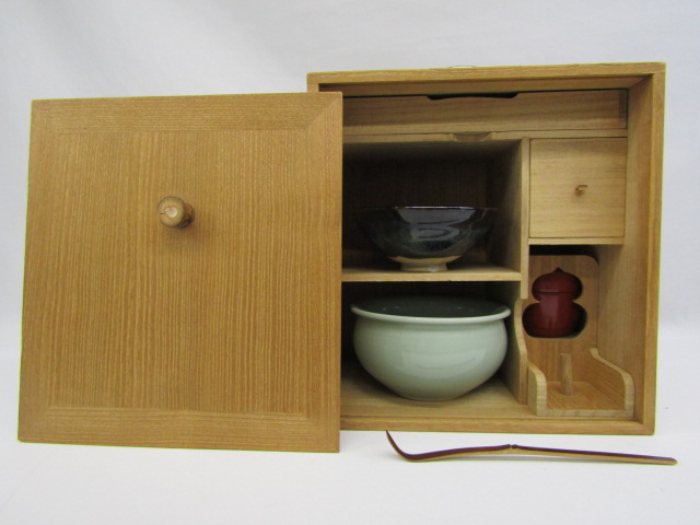 【Y】◇藪内流 水屋道具 茶箱 色紙箱 茶碗 建水 茶杓 棗 Y6-0120◇