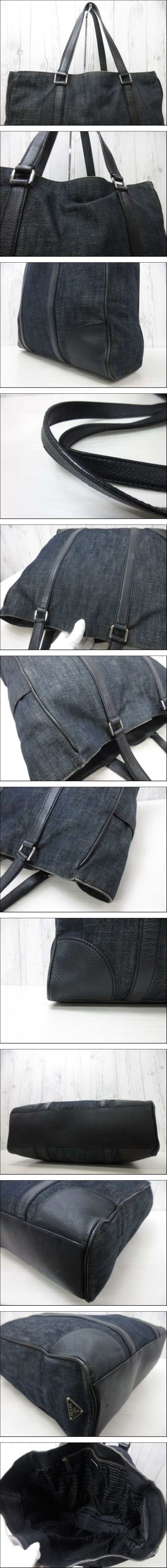 | 美品 PRADA プラダ トートバッグ ハンドバッグ バッグ デニム×レザー 黒 A4収納可 メンズ 96500Y | ||