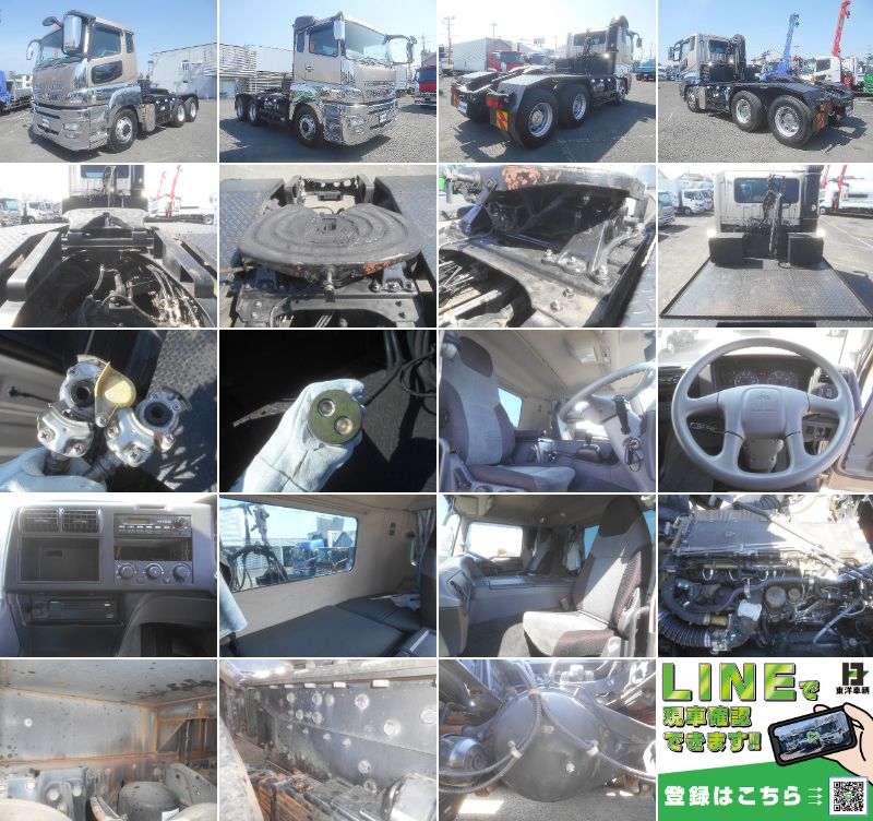 トレーラーヘッド 第5輪荷重18t 一括緩和 20tカプラー リーフサス 2デフ ブタ鼻配線 520馬力 メッキパーツ 走行57万㎞ AT車(3ペダル) 排ガス適合(各都市登録&乗り入れ可) Fタイヤサイズ:295/80R22.5 Rタイヤサイズ:11R22.5 |