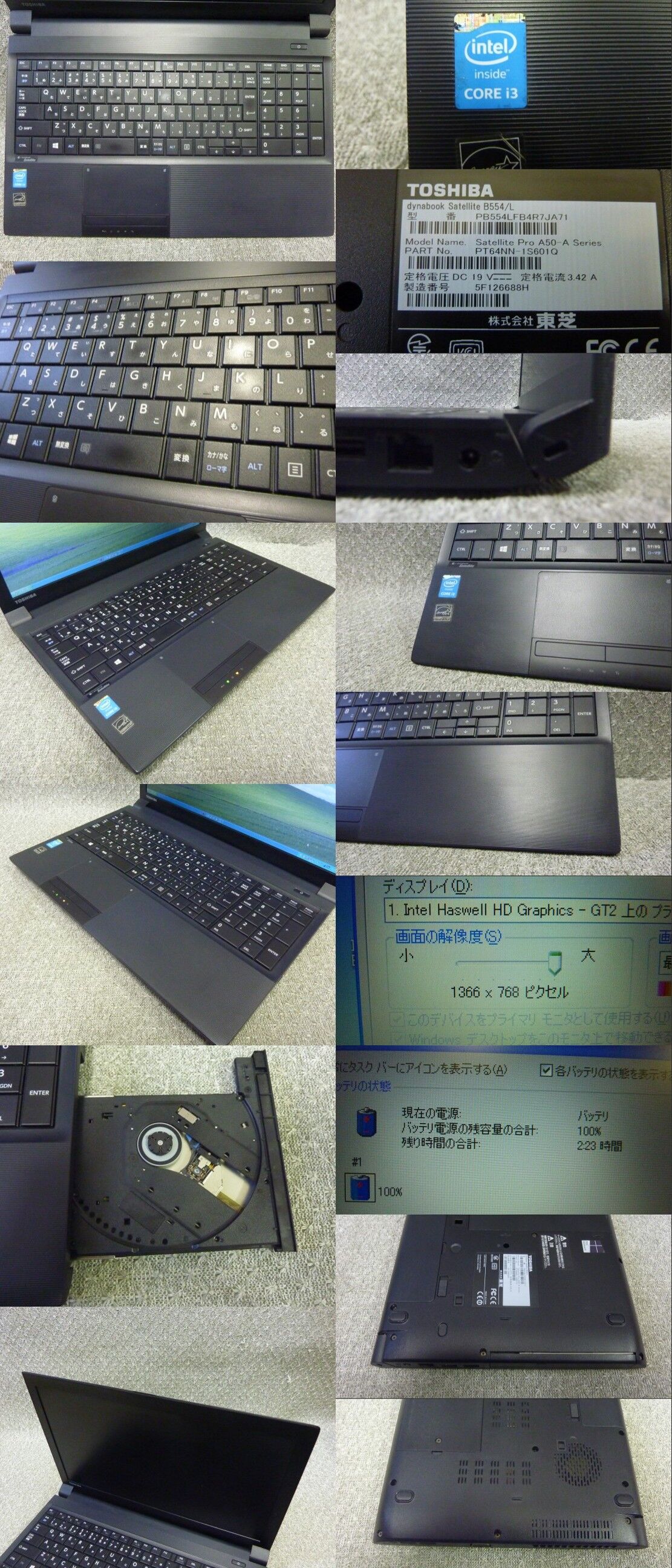 Windows XP Pro SP3 搭載 東芝 Satellite B554/L PB554LFB4R7JA71 Core i3-4000M,メモリ4GB,新品SSD256GB,マルチ,USB3.0,HDMI,office2007