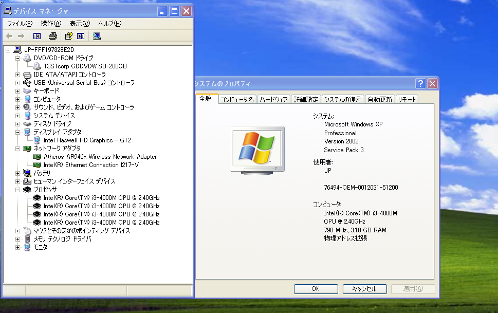 Windows XP Pro SP3 搭載 東芝 Satellite B554/L PB554LFB4R7JA71 Core i3-4000M,メモリ4GB,新品SSD256GB,マルチ,USB3.0,HDMI,office2007 [浏览原始页面]