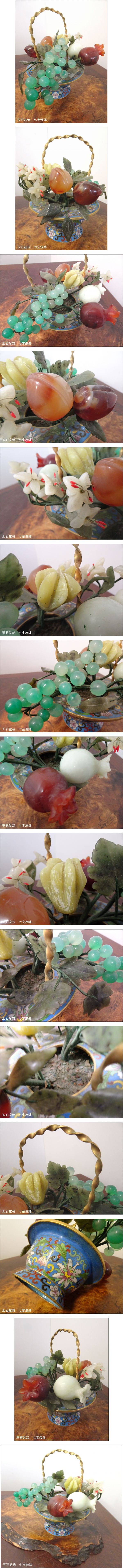 中国美術 玉石盆栽 花果物桃葡萄柘榴 石細工 七宝焼鉢 置物 | |||||||||||||||