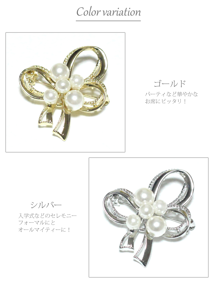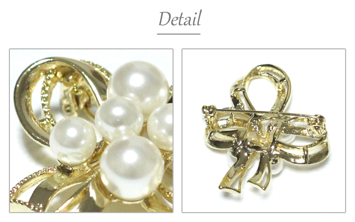 | 商品説明 | リボンモチーフ&パールお花 小さめのブローチですが、華やかなデザインですので存在感があります。 スーツなどのブローチとしてはもちろん、 スカーフやショール・マフラーなどのワンポイントアクセサリーにもGOOD!! 結婚式などの華やかシーンをはじめ、入学式卒業式などのフォーマルシーンに大活躍のアイテムです。 |