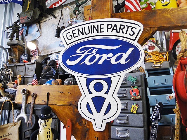 アメ車のシンボルであるV8エンジンのロゴをフォードロゴとコンビネーションさせた昔ながらの傑作ロゴがブリキ看板になって復刻登場しました。| 出价者 | 信用 | 价格 | 时间 |