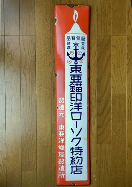 即決【昭和レトロ百貨店】東亜錨印洋ローソク 片面 ホーロー看板 当時物 ビンテージ 広告 アンティーク 街並み 蝋燭| 出价者 | 信用 | 价格 | 时间 |