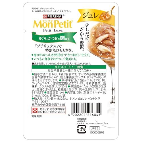 | 商品名 | モンプチ プチリュクス パウチ ジュレ まぐろとかつおの鯛添え 35gx12袋 |