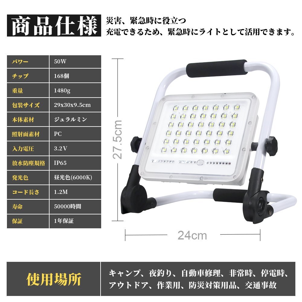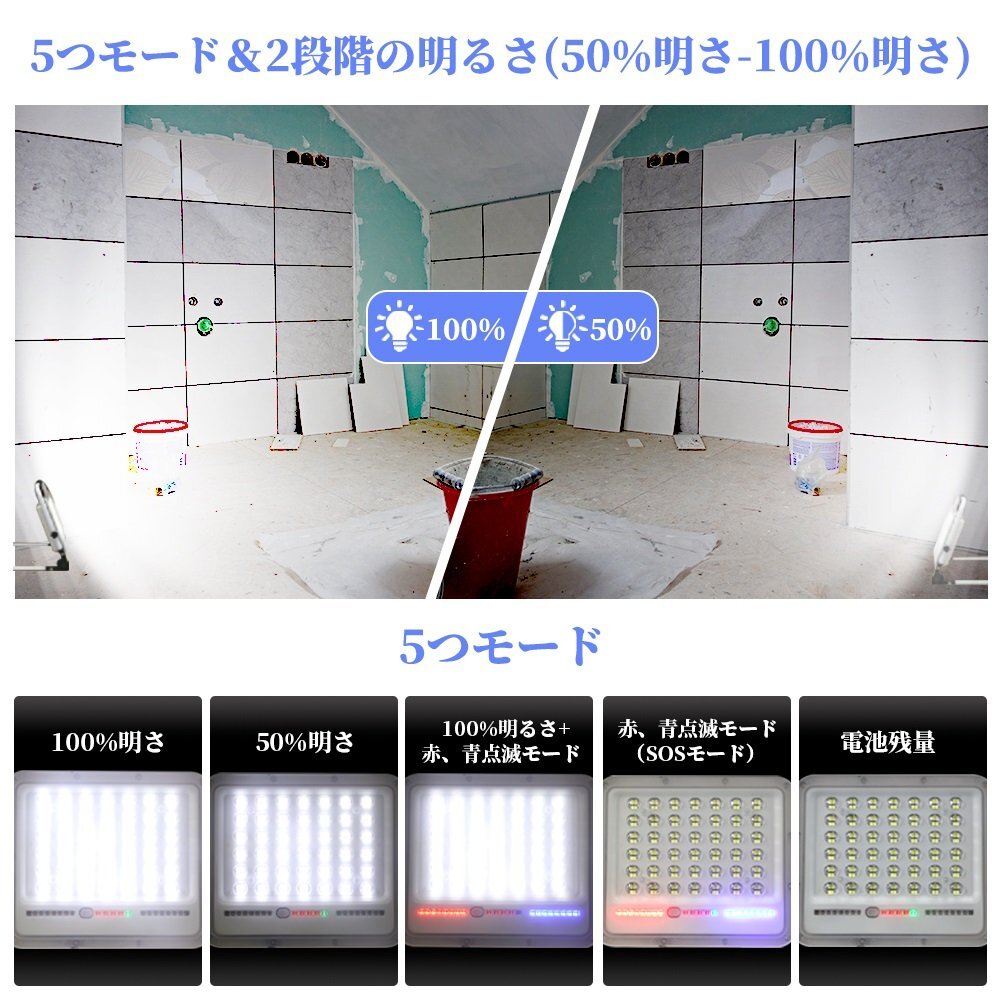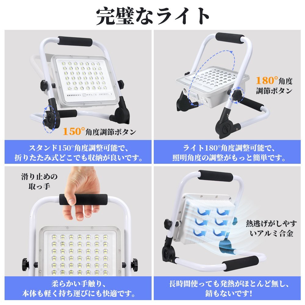◆168個高輝度LEDチップ&85RA高演色高透過性: 168個高品質SMD LEDチップを4チップ合併の配列で従来のハロゲンランプより明るさを保ちながら省エネです。投光器 充電式は最大3600ルーメンに達し、かなり強力で、6000K色温度と85RA高演色性に加えて発光効果はより均一と安定、物の色をより完璧に復元でき、ごニーズによって様々の場所で活躍できます。高い光透過性レンズの設計により、光子の消耗を最低限にすることができ、集光と投光の効果を高める。 ◆大容量電池で長時間点灯&耐久抜群: 15000mAhの大容量バッテリーが内蔵され、連続的な点灯の時間は大幅に延長し、50%の明るさは11時間以上点灯でき、100%の明るさは5時間以上点灯できます。LED投光器 はUSB充電とても便利です。高品質のバッテリーとLEDチップを採用しており、放電時間と照明時間も50000時間以上使用でき、耐久性はとても抜群です! ◆5つ点灯モード&2段階調光&180°調整可能: 投光器は5つの点灯モードがあり、明るさも2段階調光できます。電源スイッチボタンを押すだけで簡単に点灯モードと明るさを切り替えできます。SOSモードは下の6個ledチップが赤と青の点滅で非常に目立つため、万が一、緊急事態でSOS信号を発信できます。投光器のスタンドは150°、ライト本体は180°に回転でき、お好きにライトの照明角度を調整できます。 ◆全アルミ材質&IP65防水防塵: 全体はアルミ合金を採用され、強い耐久性で錆も出ないし、放熱性が優れるし、長く使用しても問題ありません。IP65防水防塵を対応し、室内外問わず使えるライトです。耐寒性、耐熱性と防水性も優れたので、雨、雪、暑さ、または台風などの悪天候でも投光器が点灯できることが保証されます。滑り止め取っ手と折りたたみ式灯体のデザインがあり、手持ち使用や収納にもとても便利です。 ◆幅広い使用: テント内の照明、夜釣り、バーベキュー、車中泊、日常使用、常備灯、地震対策、停電、アウトドア、キャンプライト、登山、防犯 、散歩、非常時、緊急時対応に備えあれば憂いありません。作業などの必需品としてお勧め、どこでも携帯する心強い宝物になっています 【保証】 ◆当商品は12っヶ月保証となります。 ◆お届けから1週間以内にご連絡のあった不良品の保証対応の送料は当方が負担いたします。 ◆保証期間内の不良品ですが、交換のみ対応しております。往復送料はお客様負担となります。在庫がない時だけ返金しますので、ご了承ください。 |
