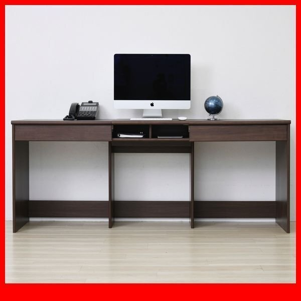 | 4つのサイズから選べるワイドデスクです。 幅広い天板はひとりなら広々と、ふたりでも十分使用できます。 両サイドに付いた引き出しや中央のオープン部といった収納スペース、 配線コードを収納するのに便利な背面のデザインなど、大きいだけではなく機能面も充実! オフィスや書斎など、さまざまなシーンで使えるシンプルで便利なデスクです。 |