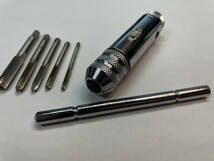 簡単にねじ切り、ねじ穴ができます。 ラチェット機構搭載のため回転方向の切り替えできます。 【商品内容】 タップホルダー(ハンドル付) 付属タップ M3、M4、M5、M6、M8 ※輸入品のため、細かい傷汚れなどが少しある場合があります。 #ねじ切り #ねじ穴 #ドリル #ネジキリ #DIY #タップハンドル #工具 #穴あけ #ドライバ