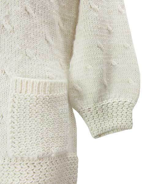 | コメント | 肌触りの良いニットのコート。 ゴールドのラメが入っていて、華やかさがあります。 お袖口はふんわりとしていて、可愛いデザイン。 オフ白なので、インナーやボトムスのお色を選ばず お使いいただけます。 シンプルなデザインで、長くお使いいただけます。 |