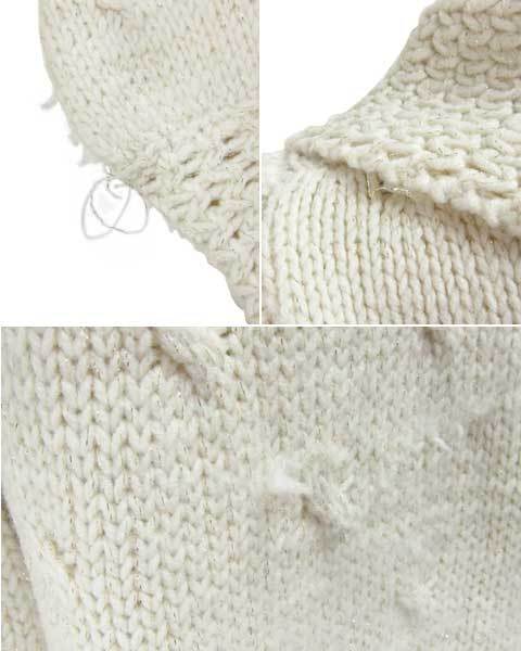 | コンディション | ラメ糸のひっかき多数。 ボタンに少し変色があります。毛羽立ちがあります。 |