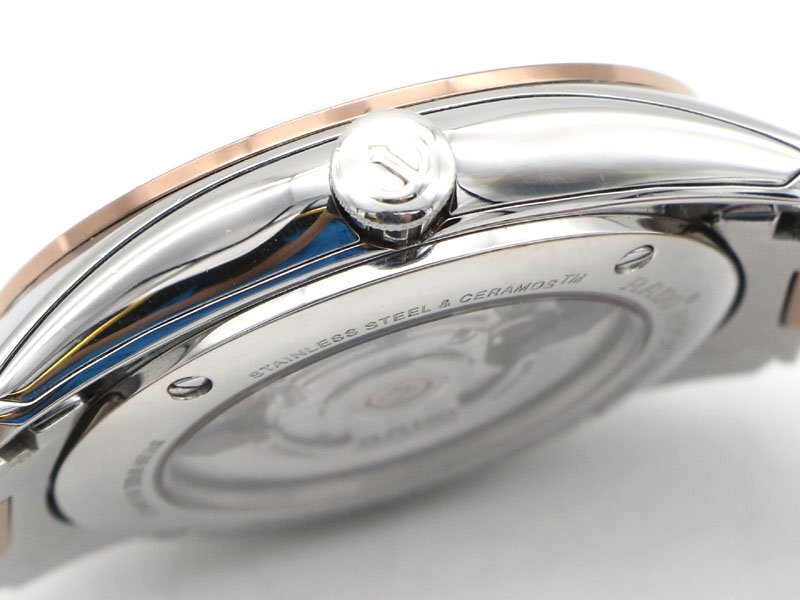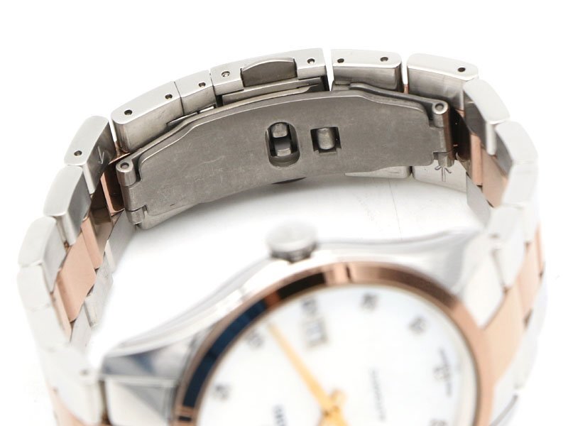 | 【時計本体】AB(下記備考をご参照下さい。) 本体左下ラグに打痕傷があります。他には微細な小傷がございますが、目立つ大きな傷はございません。 ガラスにキズや欠けはございません。 文字盤と針に劣化はございません。 |
