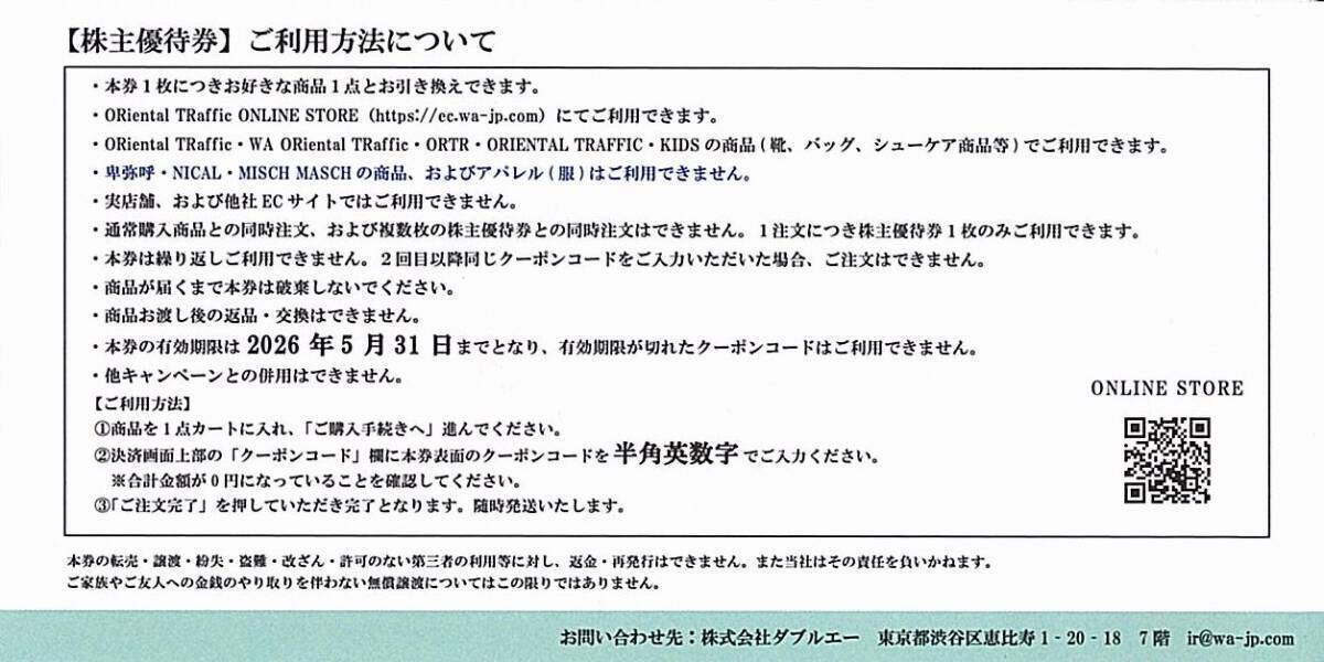 即決!ダブルエー 株主優待券 オンラインストアでお好きな靴1足無料 Oriental TRaffic/WA/ORTR/KIDS ダブルエ-/ダブル/ダブルエ-