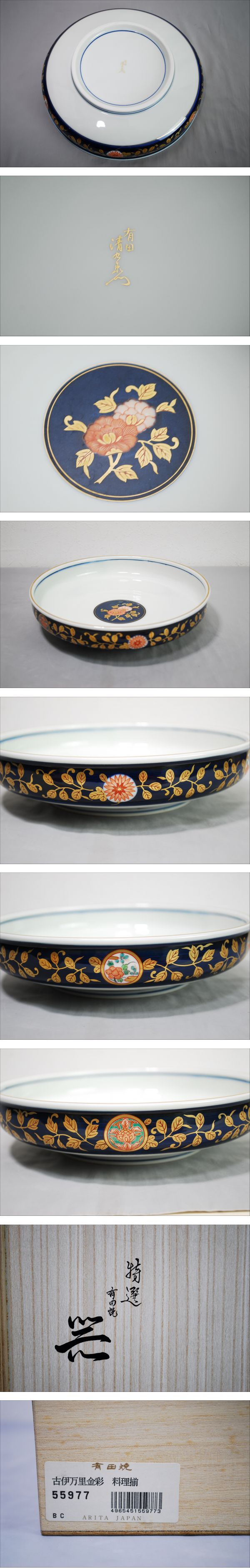 | 有田焼 古伊万里金彩 料理揃 清乃窯 深皿 盛鉢 2枚セット 木箱/検索用 時代物 大皿 平皿 盛皿【12033】 | ||