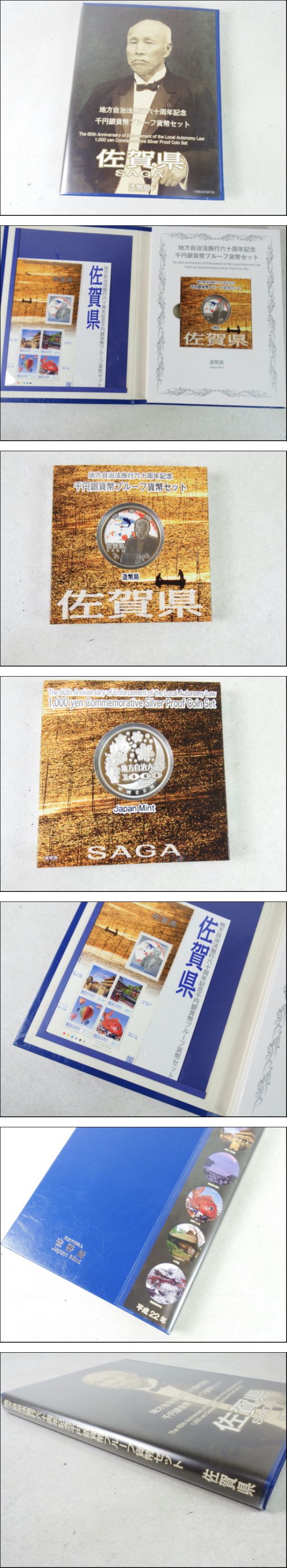 ■■⑩ 地方自治法施行60周年記念 佐賀県 1000円銀貨 プルーフ貨幣セット 記念切手(80円)5枚付 造幣局■■ | |||
