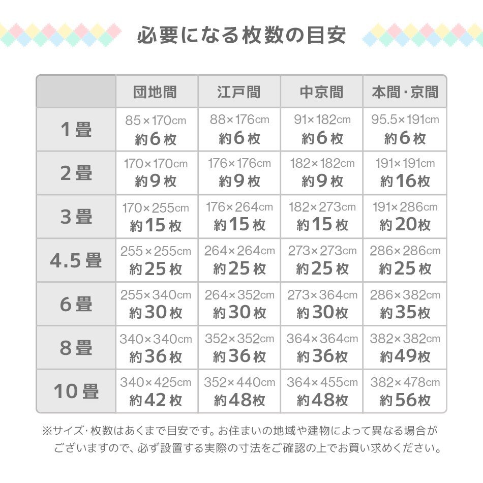 | ジョイントマットです。 大型サイズだから、敷く枚数も少なく、設置もラクラク! カッターやはさみで簡単に切れるのでレイアウト自由自在! 足音をやわらげてくれるので、子供部屋やフローリングのお部屋に最適です! 適度なクッション性が転倒時に衝撃を和らげてくれます! 冬は床下からの冷気をカット! 夏は冷房による温度を効率よく保ちます。 汚れた部分は取り外して水洗いが出来てカンタンお手入れ♪ 嬉しい!サイドパーツ付き! 壁ぎわに敷いても、隙間なくキレイに。 掃除がラクラク!! 室外用でも使える! 簡昜プールの下に敷いてもOK! アウトドアにも使えます! ペットがいるご家庭にもおすすめです。 【商品仕様】 カラー:ブラウン×ベージュ サイズ(約):幅60×奥行60×厚み1.0cm(※1枚) (設置目安サイズ(約):121×121cm(正方形)) 素材:PE素材 【商品内容】 ジョイントマット×16 サイドパーツ(角付きパーツ16本、角なしパーツ16本) ※入荷時期によって、厚みや幅に多少の誤差がある場合がございます。あらかじめご了承ください。 ※仕様・デザインは改良のため予告なく変更することがあります。 ※床材との温度差で製品が反る場合があります。 |