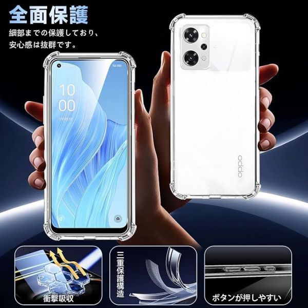 【360°フルガード 軍用グレード、高い耐衝撃性】 本製品はに対応 OPPO Reno9 A する透明ケースです。外側のシェルは高い耐黄い耐性を備えた最先端技術ADMを採用しております。しかも環境にやさしく、無毒で無味の高品質の素材を使用して、酸化防止処理しており、長年でも黄色くなりません。多数回のテストした後、2mの高さで様々な角度から26回落としましたが、携帯電話が全然傷がありませんでした!更に四隅の耐衝撃性は通常の携帯電話ケースの5倍に達し、携帯電話を全面的に保護できます。(ご注意:ご購入前機種をよくご確認くださいね。間違った機種の購入による使えないことを避けてください)