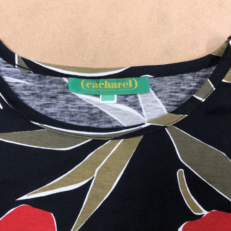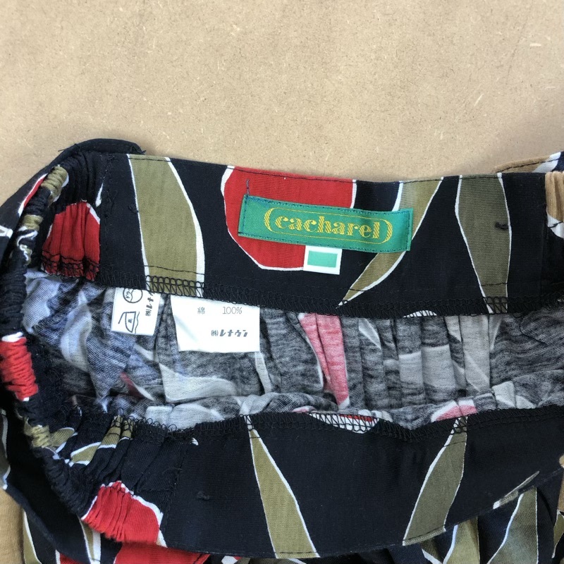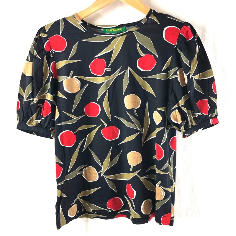 | 商品名 | キャシャレル cacharel セットアップ タグ付き カットソースカート フルーツプリント フレアスカート 肩パッド コットン100% ブラック系 958618 |