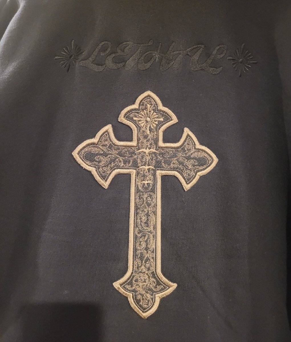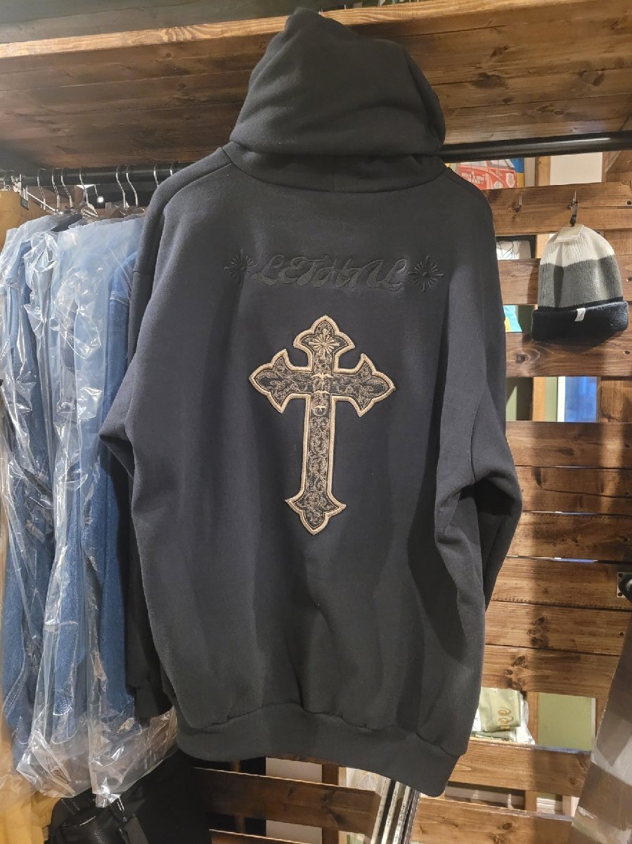●カラー:ブラック●サイズ:XXLサイズ ★リーサル極厚ディケールパーカー毎年人気のシリーズです。真冬、スノーボードにオススメの1枚です。大丈夫な厚めの生地にワッペンを施した1枚正面には、クラシックな新デザイン背中には、黒のLETHALデザイン、今期の特別な特大十字架ワッペンを取り付けました。すごく細かいデザインが入った十字架ワッペンは圧巻です。ゆったりとしたサイジングとたまり感が魅力ミニマルなデザインはあらゆるスタイルにマッチゆったりとしたリラックス感のあるサイジングにこだわった一着。大きめにとられたアームホール、ボリューム感のある袖まわりがこなれたムードを演出します。「マグナムウェイト」の名にふさわしい15.0オンスの極厚生地は、保温性抜群の裏起毛仕様。寒さ際立つ真冬の心強い味方に。生地の表糸にはオープンエンド糸を使用したことで、シャリ感とラフな雰囲気も楽しめます。表面に見えるステッチを可能な限り排したミニマルなデザインなので、ストリートはもちろんのこと、さまざまなスタイリングにマッチ。シンプルで普遍的なアイテムだからこそ、シルエットから縫製仕様までこだわりが際立つ逸品です。