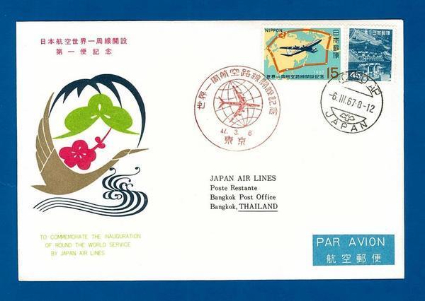 【商品説明】ファーストフライトカバー 日航 世界一周線開設 東京-バンコク 第一便記念です。