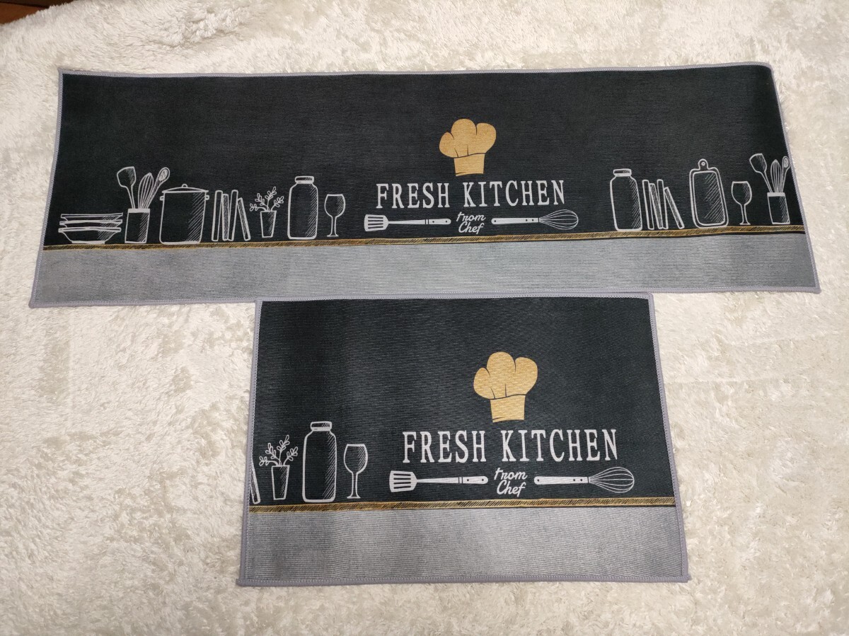 スタイリッシュな「FRESH KITCHEN」デザインのキッチンマット2枚セットです。| 出价者 | 信用 | 价格 | 时间 |