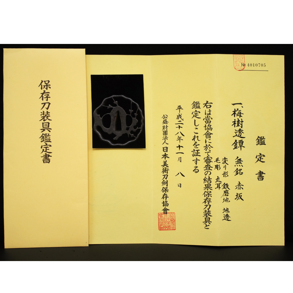 | 商品説明 | 縦:約71.7mm 横:約70.8mm 厚み(耳際) :5.9mm 厚み(切羽台):6.3mm 重さ:90.2g ・寸法は素人採寸にて誤差はご容赦ください。 ・商品は店頭でも併売しております。 ・売切れの際には出品取り下げもございます。 ・箱付き 【状態】 ・古物にご理解をいただき神経質な方は入札をご遠慮下さい。 ・付属品、状態等の詳細は写真にてご判断いただき不明な点はご質問下さい。 レターパックプラスで岡山より発送いたします。 ・写真の刀掛け、枕などの撮影機材は付属致しません。 ・著しく評価の悪い方、評価新規の方の入札を取り消しさせていただく場合がございます。 ・スムーズで気持ちの良いお取引にご協力をお願い致します。 ・ご不明な点がありましたら必ず事前にご質問下さい。 ・質問の回答にお時間を頂くとは思いますが、当方の分かる範囲でお答えさせて頂きます。 落札後の質問とクレームなしでお願い致します。 骨董品ですのであまり神経質な方は入札をご遠慮下さい。 入札、落札された場合は商品画像、商品説明、質問の回答にご納得頂き、 取引条件にご同意頂いたものとさせて頂きます。 落札より48時間以内にご連絡が取れ、 3~4日間程度で商品代金を入金できる方のみご参加下さい。 商品の状態や付属品に関しては画像でご確認の上、各位にてご判断下さい。 落札者様のご都合による返品は一切受付けておりません。 |