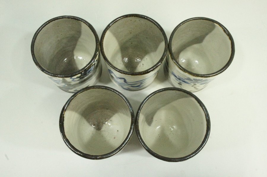 清水六兵衛の窯作、草花画変湯のみ五客揃です。