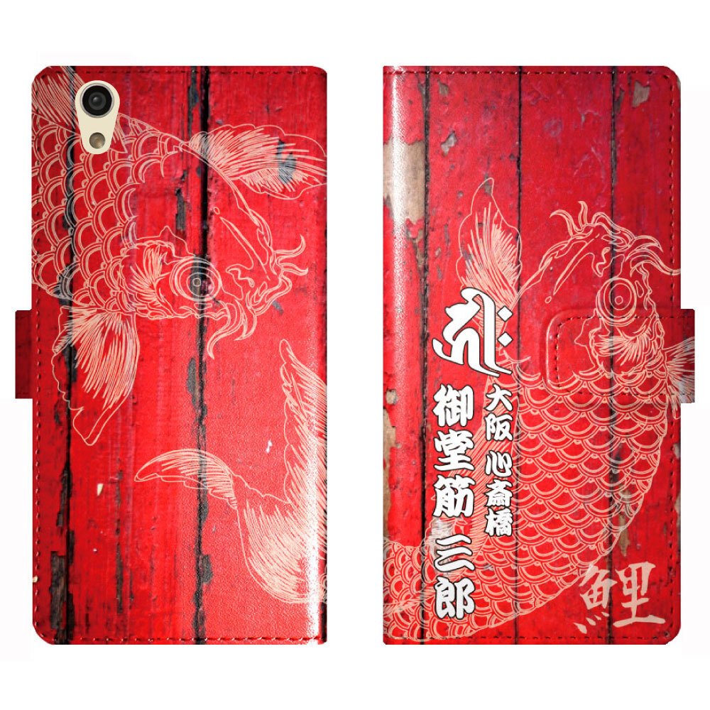 AQUOS sense2 SH-01L SHV43 対応、干支を表す梵字と鯉の和柄デザインに名入れができる手帳型ケース