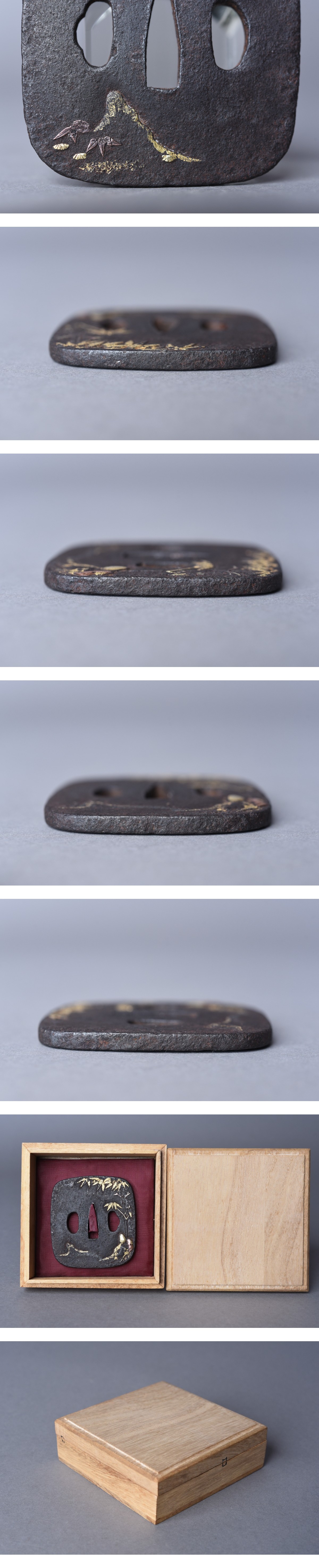 | 商品説明 | 厚さ6.1mm 幅69.3mm 奥行75mm 茎穴7.8mm×27.9mm 重量183g (多少の誤差は御了承下さい) 経年による若干の汚れ・擦れ・キズ・錆び・イタミ等があります、 状態は、画像にてご確認、判断の上で入札していただきますようお願いいたします。 |