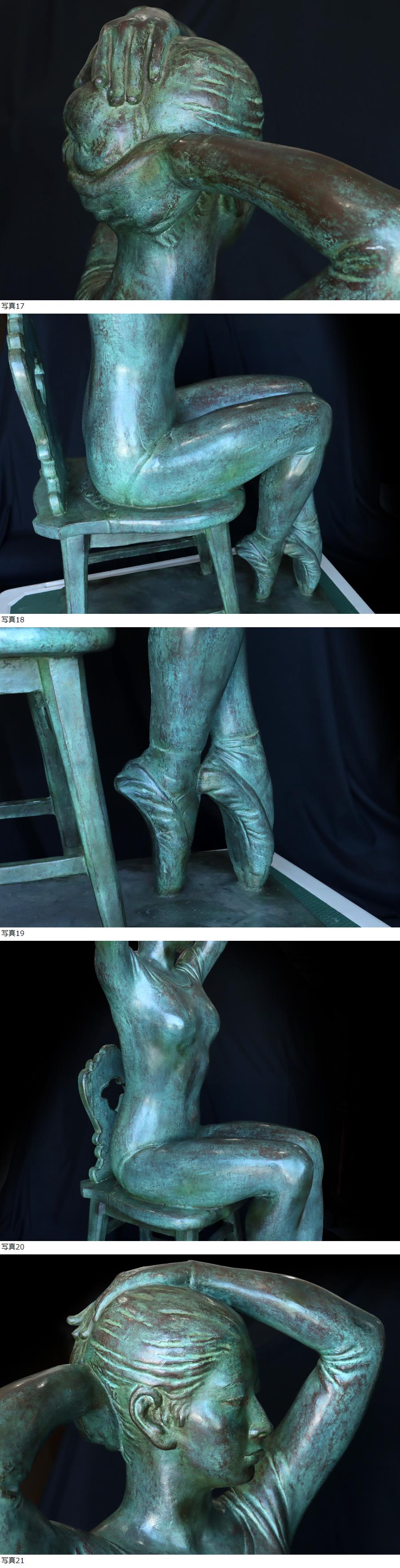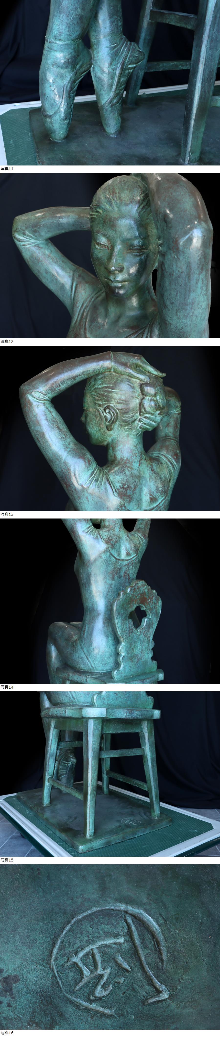 サイズ(約) 高さ 120㎝/横幅 37.5㎝/奥行 63㎝ 総重量 170㎏ 付属品 - 貴重! 大作! 彫刻家 高橋剛 作 ブロンズ像 「バレリーナ」 超特大作品 高さ120㎝ 総重量約170kg 高橋剛 1921-1991 昭和後期-平成時代の彫刻家。 大正10年8月31日山形県生まれ。 関野聖雲,北村西望に師事。 昭和22年日展に初入選。 31年/32年/33年特選、35年同会員。 37年日本彫塑会委員。 61年「稽古場の踊り子」で芸術院恩賜賞。 平成3年9月5日死去。 高橋剛作、特大ブロンズ置物でございます。 高さ120㎝、重量はなんと約170kgもある特大作品でございます。 このサイズのお品は数も少なく入手困難となっております。 状態も 良好です。大変貴重な作品となっております。ぜひお見逃しなく!! |