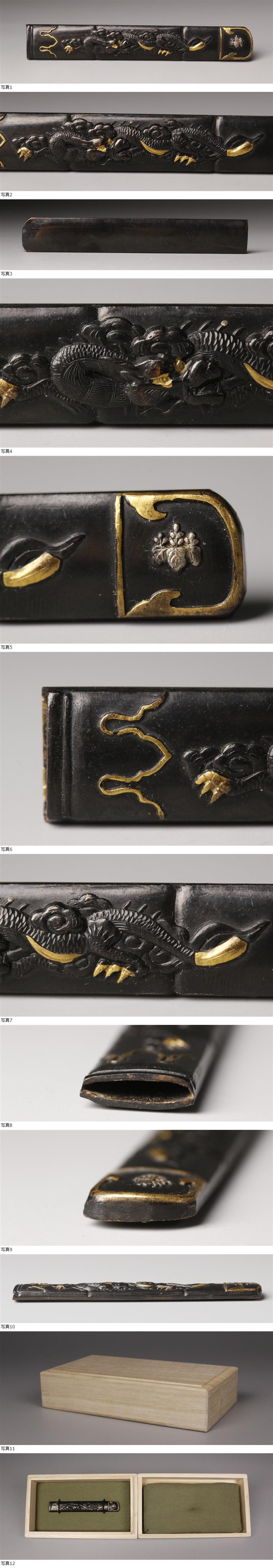 26031106* * * 商品詳細 * * * ここでしか出逢うことのできない唯一の美をご紹介させて頂きます。 落ち着いた色味の肌地に龍図が迫力ある逸品です。 銅地に金彩が映え、力強く躍動する龍の精緻な高彫りは圧巻で、 鱗一枚一枚まで神経の行き届いた彫金には金彩が施され、独特の輝きを放っています。 五三桐の家紋が配された格調高い仕上がりと、銅地特有の深い風合いが、 美術品としての風格をいっそう高めています。 この機会にお手元にてご堪能下さい。 ■商品内容/小柄、箱 ■サイズ/全長9.3cm×幅1.5cm×厚0.6㎝ 箱:横15cm×高3cm×奥行8.5㎝ ■状態/スレ、傷、剥げ、汚れ、箱にスレ、傷、へこみがございます。 ※写真にてご確認、ご了承の上ご入札下さい。 * * * 支払詳細 * * * !かんたん決済 * * * 発送詳細 * * * 入金確認後3営業日以内に発送致します。 ※直接引き取りも可能です。 60~160サイズにつきましては 佐川急便、ゆうパックのどちらかで発送いたします。 ゆうパック発送の場合、弊社の発送日から追跡サービスに問合せ番号が反映されるまで 約1日ほどお時間がかかりますのでご了承下さい。 * * * 注意事項 * * * 運送中の破損があった場合は速やかに当社までご連絡下さい。 保険を利用するのに受取連絡後に運送会社による現場での破損状況確認が必要となります。 勝手に返送されますと保険の適用外となりますのでご注意ください。 * * * * * * お問い合わせ:082-236-8669 |