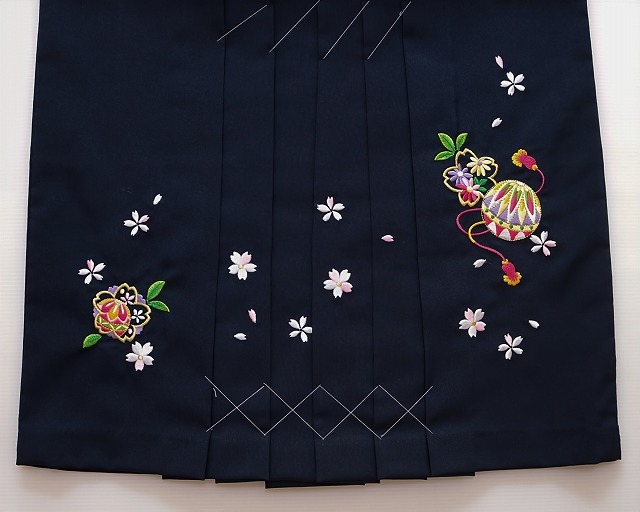 | H7910-09 福羽留 こちらはジュニア着物のトップブランド『陽気な天使』の刺繍柄入りのはかまです。 ポリエステル生地を使用しており 汚れなども気にせず 手触りも良く着用しやすい袴ではないでしょうか。 お色もお着物にも合わせやすい単色となっており刺繍の花が映える袴となっております。 袴単品となっておりますが お着物(二尺袖など)なども当ショップに多数ございますので お寄りくださいね。 お色は紺色地に白色やピンク・緑色・藤色・金色糸などにて花柄や手毬の刺繍柄があります。★ | ||||||