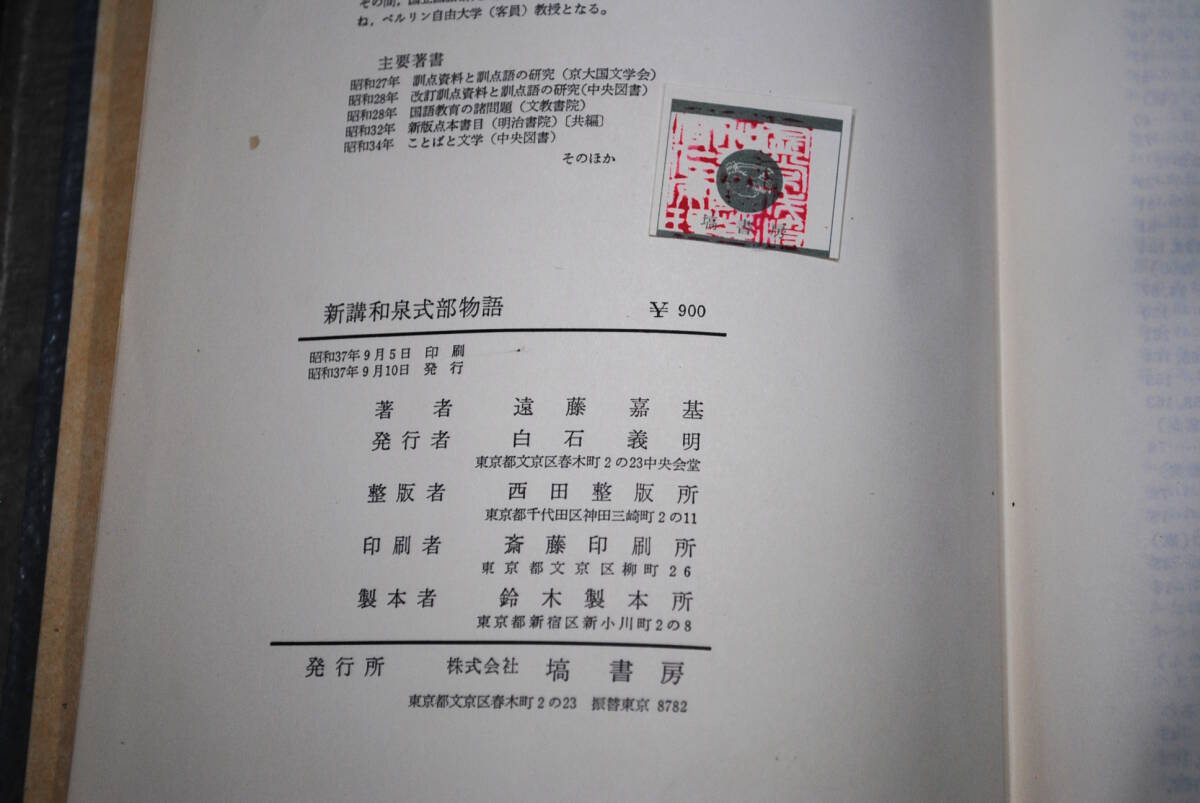 【売切り屋】新講和泉式部物語 遠藤嘉基 直筆サイン入 謹呈 昭和37年 塙書房刊 古書和本