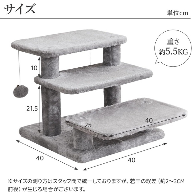 ご覧いただきありがとうございます。 5色展開です。 ご希望の色を事前に お手数ですが「質問する」からご連絡ください。 商品名:ペットスロープ ペットステップ 【この商品が品質で選ばれる理由】 愛猫の昇降を優しくサポートし、日々の生活を快適にする高品質なスロープです。 ■こんな悩みありませんか? ・愛猫が高齢になり、ソファやベッドへの上り下りが大変そうですか? ・子猫や足腰の弱いペットが、段差でつまづいたり、怪我をするのが心配ですか? ・ペットが無理にジャンプすることで、関節に負担がかかるのが気になりますか? ★こんな時におすすめ! ・愛猫の足腰の負担を減らし、安全に昇降させたい時におすすめです。 ・ソファやベッドなど、ペットが行きたい場所への設置に便利です。 ・お部屋の雰囲気に合わせて、おしゃれなペット用品を選びたい時に役立ちます。 ------------------------------------- 【優しい設計と安定性】 ・各段の高さを約15cmに設計されているため、老猫、子猫、足腰が弱った猫でも無理なく段階的に昇降できます。 ・約5.5kgの重さで、軽すぎず倒れず、重すぎず移動もラクラクです。猫が駆け上がってもしっかり固定します。 【多様な設置場所とデザイン】 ・ソファ、ベッド、窓辺、キャットタワーなど、猫の行きたい場所の横に設置可能です。 ・室内のレイアウトに溶け込むデザインです。 ・いろんな色があるので、お部屋の雰囲気に合わせて選ぶことができます。 【簡単組み立て】 ・組み立てが容易で、1人でも問題なく組み立てられます。 ご不明な点などございましたら お気軽に「質問する」からお問い合わせください。 |