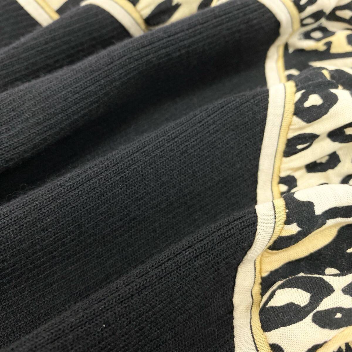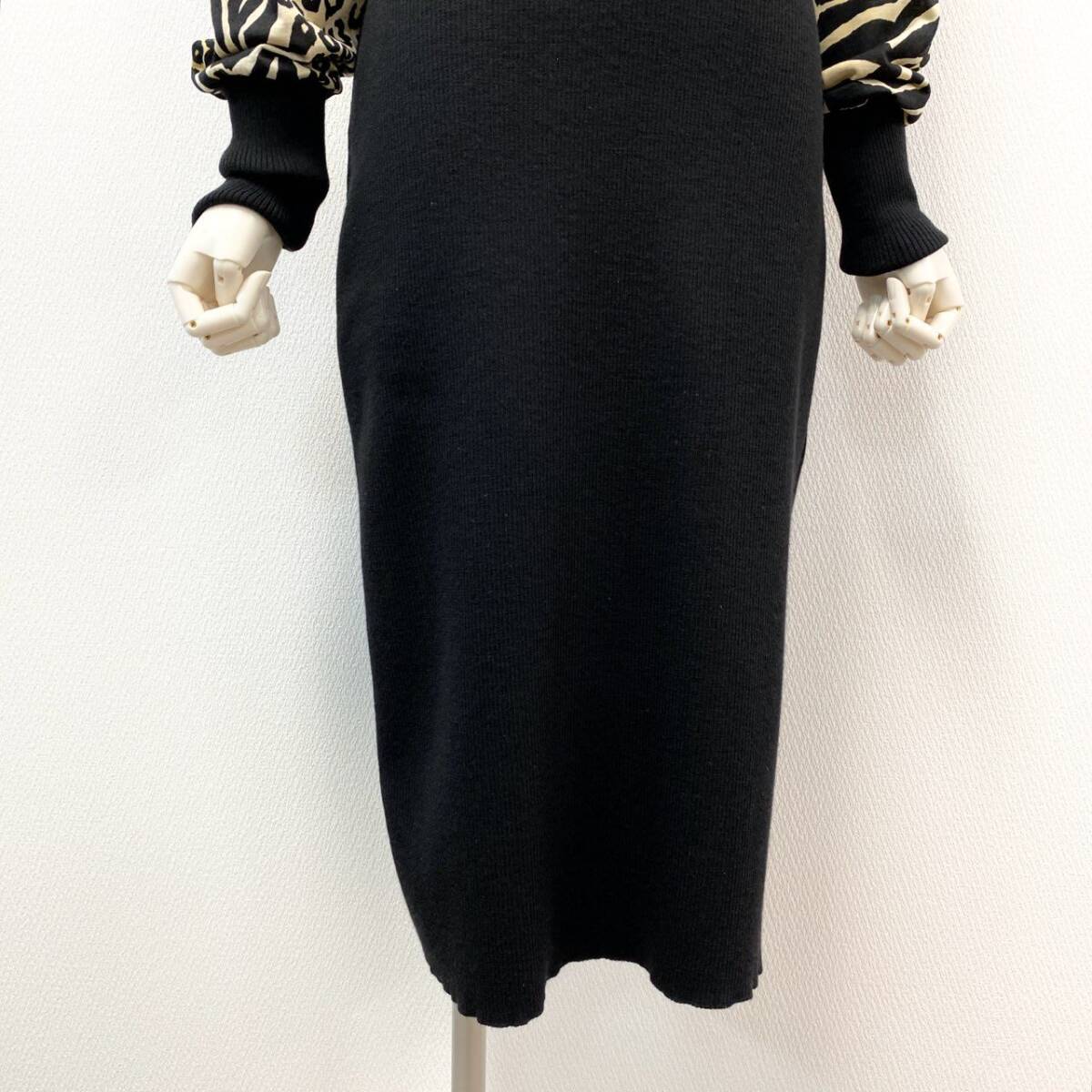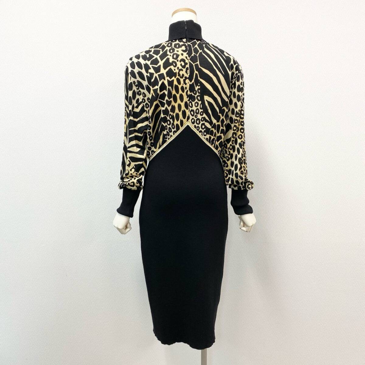 | スタッフ商品コメント | ブラックをベースに、ベージュ〜ゴールド系のアニマル柄を大胆に配したLEONARDのニットワンピース。異素材のコントラストが高級感を演出します。ハイネックとドルマンスリーブがモードな印象を与えつつ、ボディラインを美しく引き立てるデザイン。ディナーシーンやパーティーなど、華やかな場にふさわしい一着です。 |