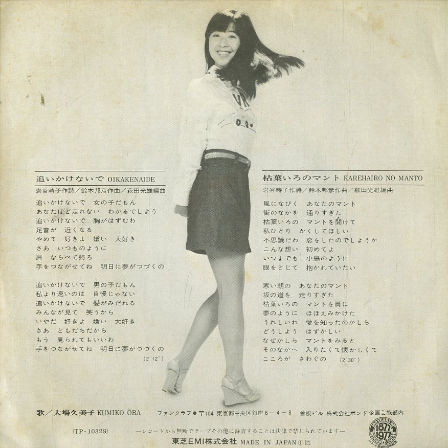 C00145577/EP/大場久美子「追いかけないで/枯葉いろのマント」 [浏览原始页面]