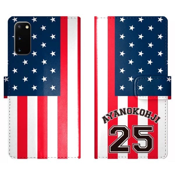 Galaxy S20 5G SC-51A SCG01 対応、星条旗のデザインに背番号の名入れができる手帳型ケース