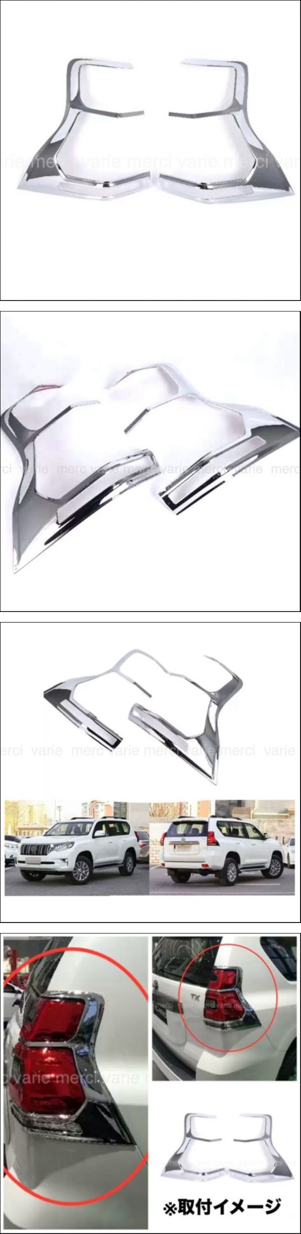 | 商品説明 | ご覧いただきありがとうございます。 トヨタ ランドクルーザープラド用のテールランプクロームメッキガーニッシュの出品となります。 ●商品説明● ・ノーマル仕様でもかっこいいですが、テールランプガーニッシュを装着する事で、 リアテールの印象が変わり、ルックスが更にドレスアップされます。 取付け方法につきましては、本体に両面テープが接着されておりますので、シールを剥がし即お取り付けが可能となっております。 この機会にいかがでしょうか。 ●商品内容● ・クロームメッキ テールランプガーニッシュ左右×1セット ・材質:ABS樹脂製 ・カラー:メッキ ・仕様:専用設計 ・状態:新品、未使用品 ●適合について● ・メーカー:トヨタ ・車種:ランドクルーザープラド ・型式:150系 ・年式:2017年9月(平成29年9月)〜 後期 ●注意事項● ・お客様によるサイズ違い等でのご返品及びキャンセルは不可とさせて頂きます。 ・年式や型式等により適合しない場合がございますので、純正品番をお確かめの上、ご入札をお願い致します。 (上記の場合は、ご返品はできかねます。) ・お取り付けに関しましては、自己責任にてお願い致します。 ・商品取り付け後に発生した、事故やトラブルにつきましては一切の責任を負いかねます。 ・発送後の紛失や破損につきましては、運送会社の補償内容の規定に従います。 ●発送について● ・匿名配送にてお送りさせて頂きます。 ●送料について● ・当方にて負担させて頂きます。 宜しくお願い申し上げます。 |