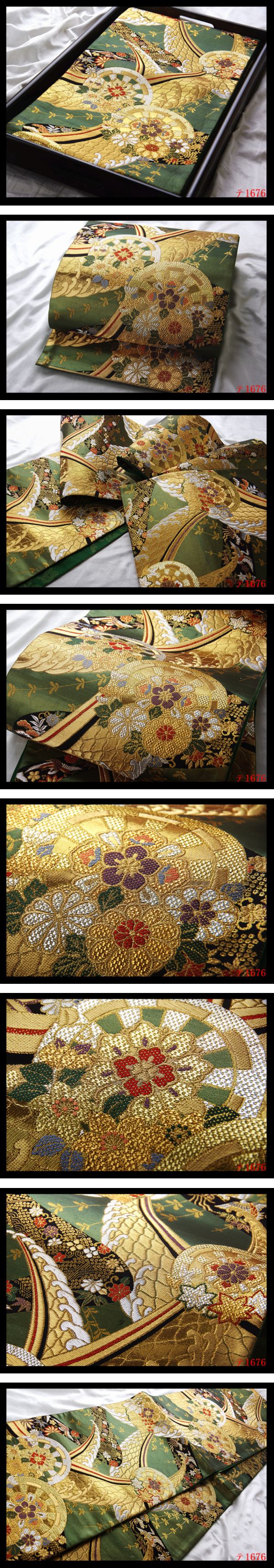 中々上手く撮影出来ないですが、現物は画像以上に、帯の色彩、質感・柄行きなど大変美しい高級品です 職人の技が光る逸品です。 大胆なデザイン★職人独自巧み技 精緻な意匠表現重厚感際立つ美術帯の作品 ★職人の感性と細やかな巧み技★織細な技術とで綾なされた逸品★きめ細かな織が立体感、見る角度によって色んな表情、 織の創作性に富んだ意匠センスが魅力的細緻極まる織り味で表現された豪華な高級感に満ち溢れた日本情緒が匂い立つ意匠の格調高い帯姿を纏う帯です。 優美な意匠はとりわけ華麗な和の真髄を表し 非常に洗練された紋を取り入れた意匠は見る者を圧倒し、ひと際華やかで美しい、堂々とした存在感が漂います。 地色の美しさもまた格別です。文様に使われている様々な色糸も、それぞれに色そのものが上品で美しく、 見ていても飽きないほどうっとりするような洗練された色柄が秀逸です。 繊細な大変上質な高級織物の風合いの良さが息づいた日本独自の古典伝統美 とても綺麗な色い格調超高い★高級帯 お好きな方・お探しでした方は是非この機会にご検討ください。 優美な意匠があしらわれた袋帯です 吉祥の気配漂う意匠をお楽しみください、 かっこよくエレガントな雰囲気も期待できます 高価な高級袋帯はこれより低価で出品する事まずございません、早い者勝ち 同じお品物は二度と出回らない限定の出品で御座いますのでお見逃し無く. 他でも販売していますので、予告なく出品を取り消す場合がございます。 何卒ご了承ください。 注意事項 ーーーーーーーーーーーーーーーーー 中古品にご理解のある方のみ入札をお願いします。 中古品である事を御理解下さい お着物や帯の生地などの伸縮性のため、サイズに若干の誤差がある場合がございます。御了承下さい。 トラブルを防ぎ、商品の状態・判断し易いため 弊社は努力して、色々角度から丁寧に商品撮影しており 商品写真をよくご覧頂き御自身の責任を持って 商品の状態・慎重に判断して入札をお願い致します ノークレーム・ノーリターンでお願いします 他でも販売していますので、予告なく出品を取り消す場合がございます。何卒ご了承ください。 ★1つ1つ実際の商品を撮影し 出来る限り同じ発色に近づけるよう撮影しておりますが、撮影環境、フラッシュを使用している場合があります、 ディスプレイ等の関係で、実物の色と多少異なる場合がございますのでご了承下さいませ 商品画像は撮影後に画像の編集は一切行っておりません。 ※商品は画像の物が全てです。 お客様ご使用のブラウザやパソコンのモニター環境などによっては、多少色合いなどが実物の色と異なって見える場合がございます。 画像色の淡濃が実物の色と多少異なる場合もございますので、予めご了承いただけますようお願い申し上げます。 未使用のお品に関しましても、あくまで一度人の手に渡った品ですので、完璧なものをお望みの方は入札をお控え下さい。 トラブルを防ぎ、写真、商品説明をよく読みになり、神経質な方のご入札はご遠慮ください 色やイメージ違い等での返品・交換はお受けできません イメージと違う等のクレームは一切お受け出来ませんのでご理解ください。 理解できない方、説明文・画像等で判断つかない方、 同意できない方大変神経質な方は入札しないで下さい。 当店からの説明文・画像等をご納得頂いた上でノークレーム、ノーリターンを厳守できる方のみでご入札お願いします オークションの為、原則ノークレーム・ノーリターンでお願い致します。 ただし、ご到着の品がご落札の品と違った場合や寸法などが商品説明と著しく違う場合は、お手数ですが商品到着後、 3天以内に連絡掲示板にてご連絡ください。誠意を持って対応させていただきます (商品到着後3天を過ぎた場合は対応いたしかねます)。 商品到着日に関してですが、商品到着日指定のご連絡がない場合、商品発送日の翌日(九州)または翌々日(北海道・本州・四国・沖縄)を到着日とさせていただきます。 予めご了承ください。 当方商品は中古として取り扱っております。 【新品出品するの場合明記致します】 経年に伴うシミ汚れ等のチェックには注意を払っておりますが、見落としがある場合もございますし、 ★箪笥に入っておりました着物や帯なので畳みシワや匂いがあるものもございます。 未使用のお品に関しましても、あくまで一度人の手に渡った品ですので、 完璧なものをお望みの方は入札をお控え下さい。 瑕疵の状態に関しましては、個々の見解の違いがありますのでご了承ください。 細かい瑕疵等が画像で確認できない場合がございます。 ご入札ご落札後は瑕疵の状態についての保証はいたしかねます。 実物との色合い誤差を無くす為、極力丁寧な撮影を心がけておりますが、パソコン上で表示される色は各モニターの性能や設定により異なる場合がございます。 予めご理解の程よろしくお願いいたします。 お客様画像を